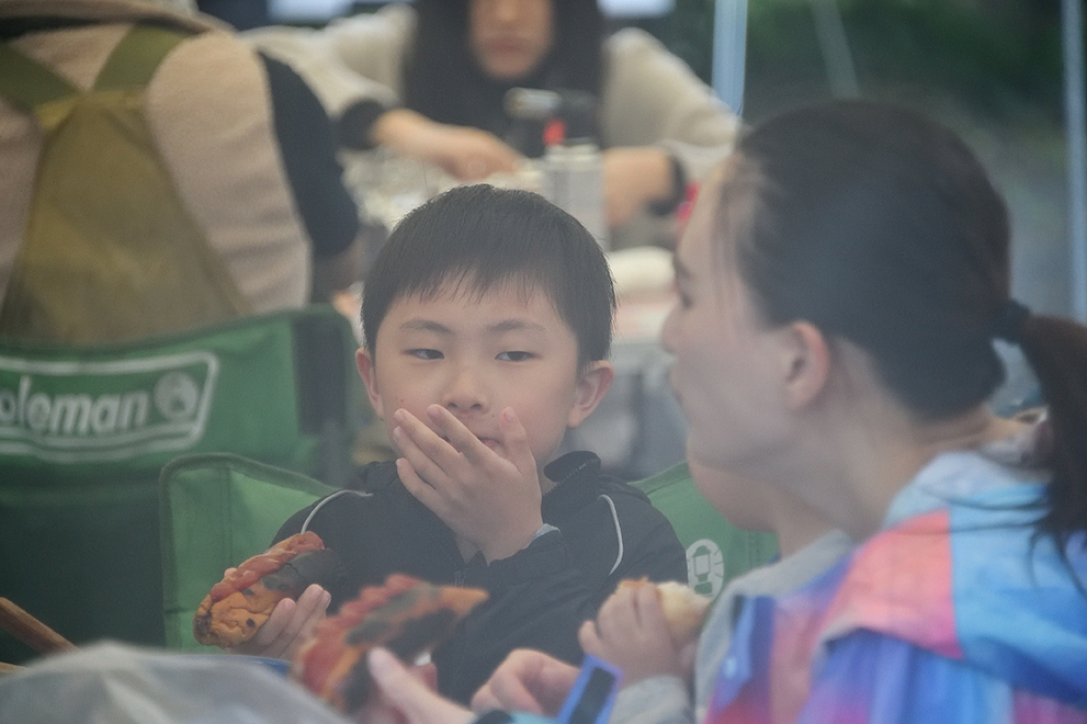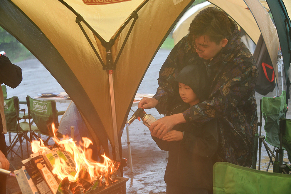 快適生活研究家である田中ケン氏によるアウトドアクッキング。今回は牛乳パックを燃料に用いたカートンドックのレクチャーがあり、参加者は熱々のカートンドックを堪能しました。